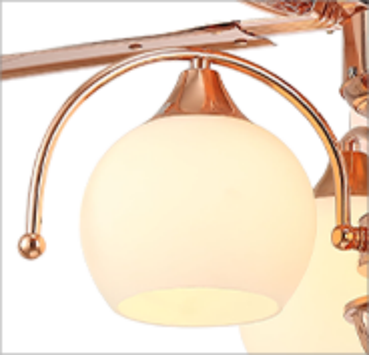 Customizable 4-Light Vintage Luxury Rose Gold Metal Chandelier with LED Zipper Control Fan Remote Switch 5 Blades for Bathroom