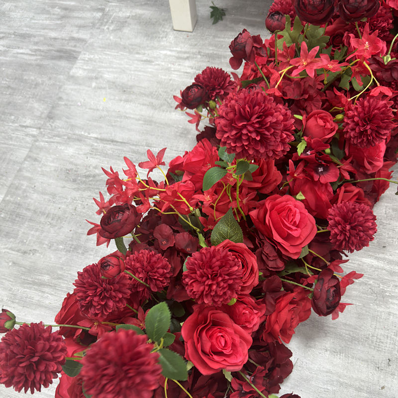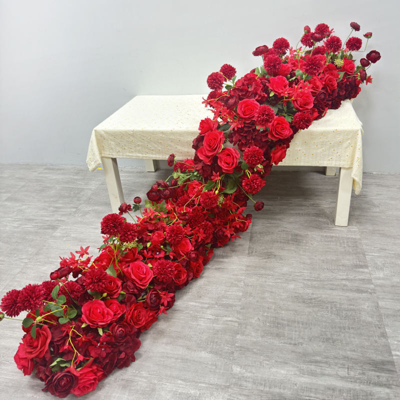 Customization Wedding centerpiece Decoration Red Silk Artificial Flower Garland Arch Wholesale Table Flower Runner for Event