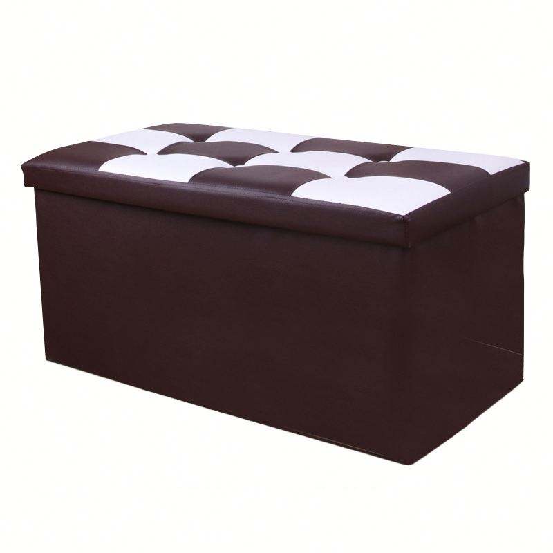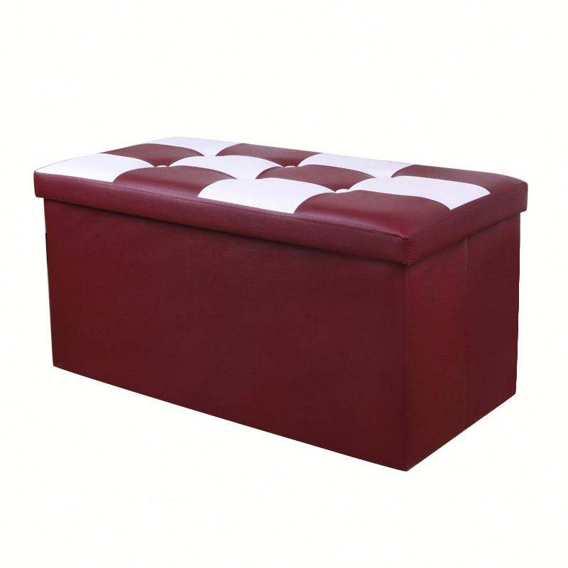 Customization White and Red Storage Foot Stool Spliced Leather Storage Ottoman