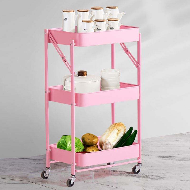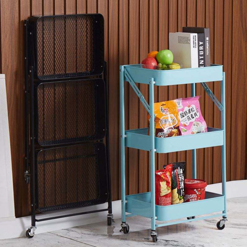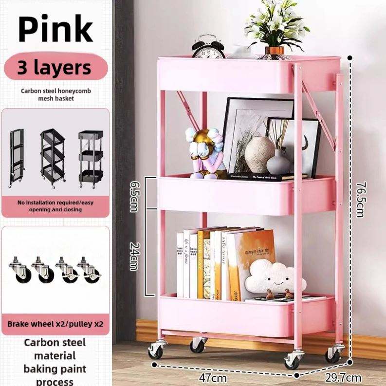 Customize 3-Layer Foldable Metal Utility Cart Space-Saving Functional Storage Trolley for Bedroom Kitchen Bathroom