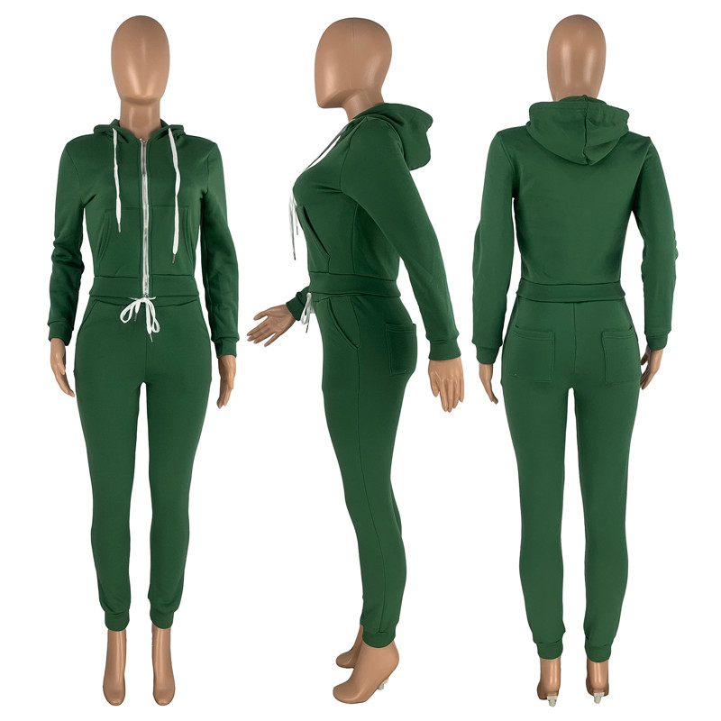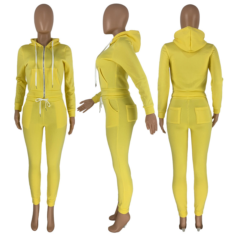 Customize 345 Grams Polyester Cotton Clothing Casual Fleece Two Piece Ladies Blue Crop Tops Hoodies Sets for Women