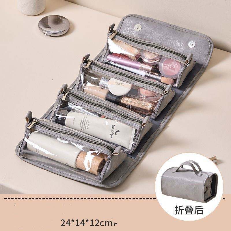 Customize 4-in-1 Roll-Up Foldable Travel Makeup Bag Larger Capacity Hanging Toiletry Bag Removable Zipper Clear Cosmetic Bag