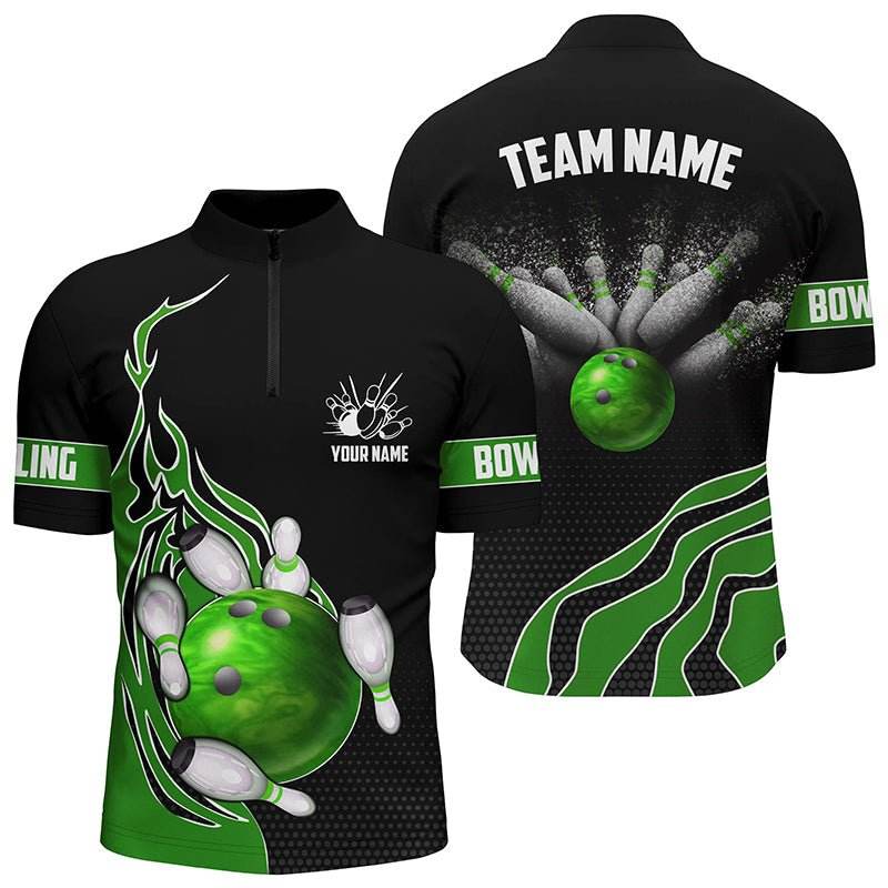 Customize Back Front Design Men's 100% Polyester Heat-Transfer Printed Quarter Zip Bowling Shirt Leopard Quick Dry Breathable