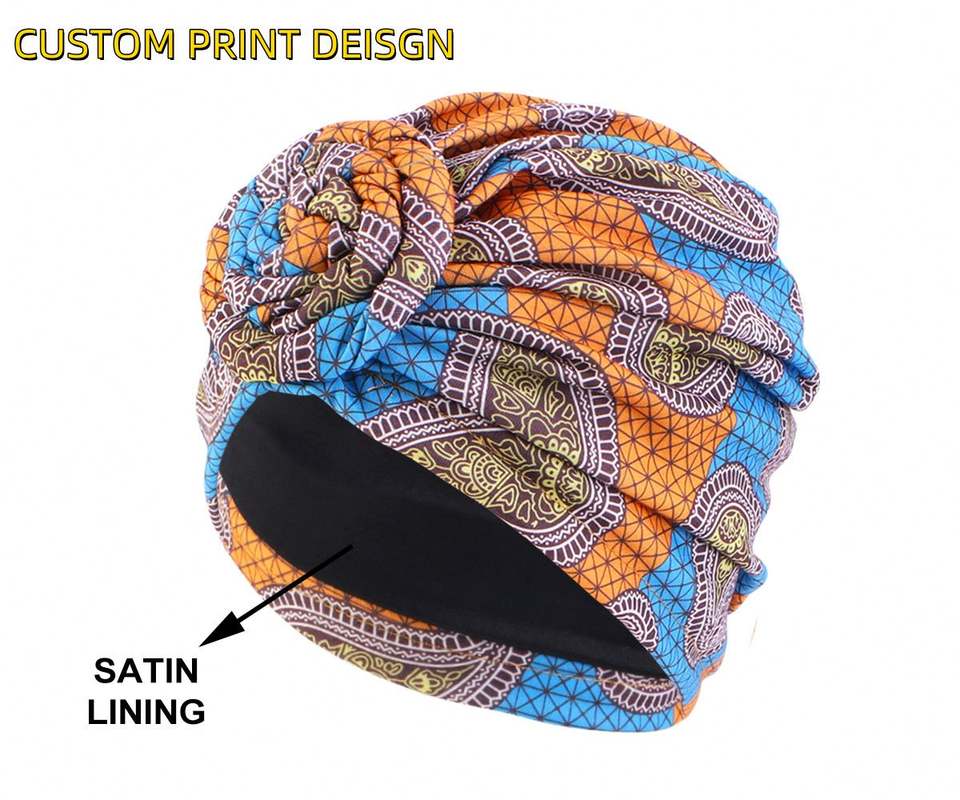 Customize Design Fashion Design Double Layer Solid Color Chemo Head Wear Women Top Knot Twisted Turban Hat With Satin Lining