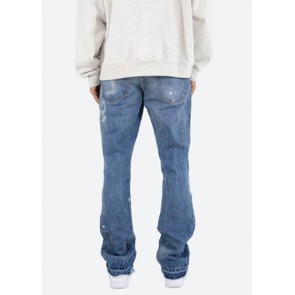 Customize Designer Trousers Straight Fit Baggy Patchwork Blue Contrast Raw Edge Splash Paints Men Flare Jeans