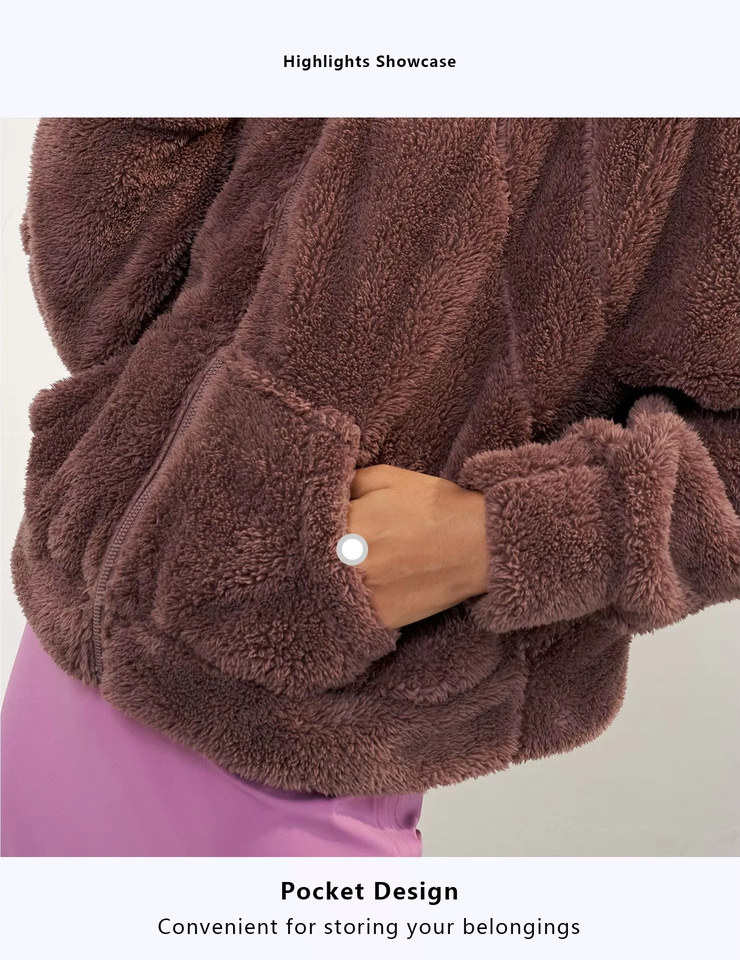 Customize Fashion Design Women's Winter Warm Zipper Coat Plush Stand Collar Long Sleeve Girls Jacket