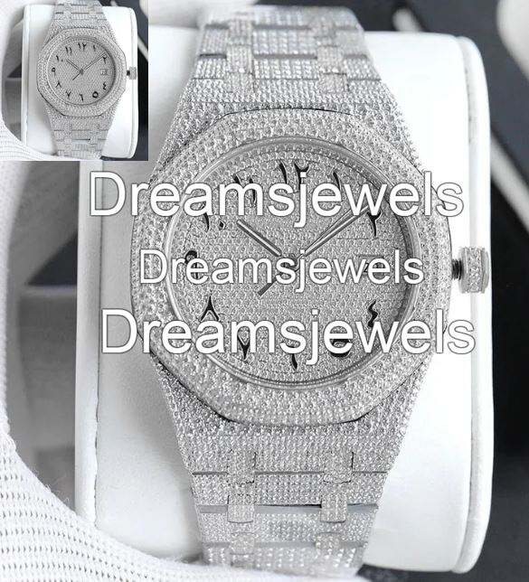 Customize Fully Iced Vvs Stainless Steel 46mm 5mm Thick Analog Quartz Glass Dial Luxury Antique Hip Hop Auto Date Unisex Watch