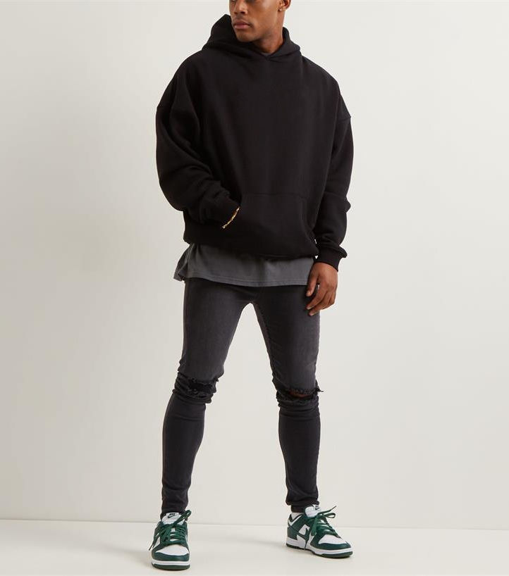 Customize Heavyweight Plain Hoodies No String 480 GSM 500 GSM Men Hoodies 100% Cotton Black color For Side Pocket men Hoodie