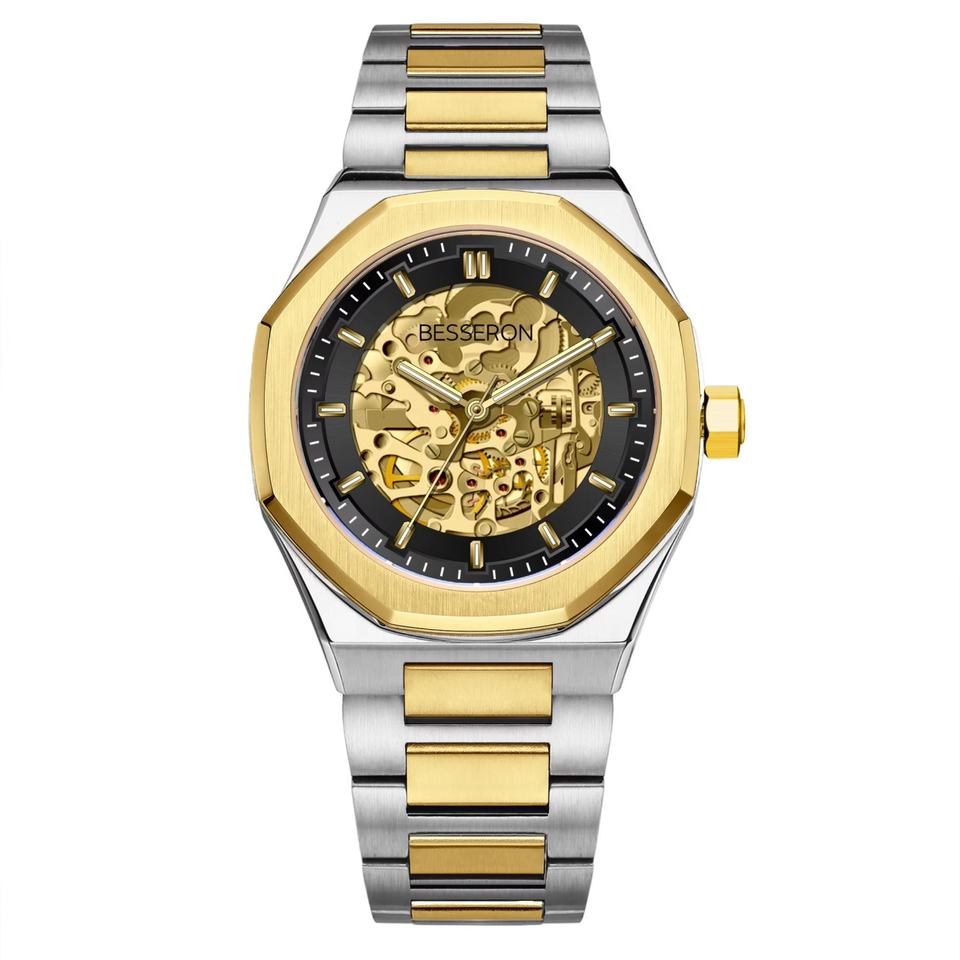 Customize Hollow-out Dial Custom Logo Watch 316L Stainless Steel Mechanical Watch 2tone Men's WristWatch With Visible Mechanism