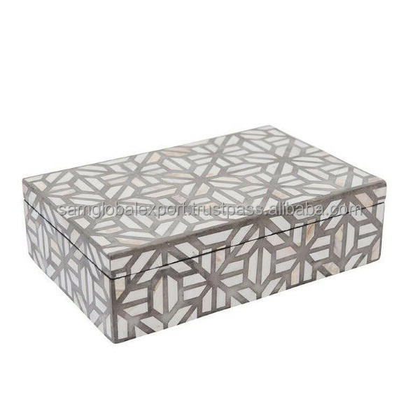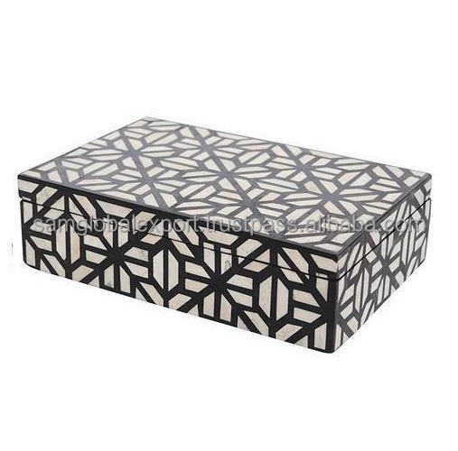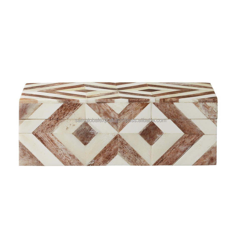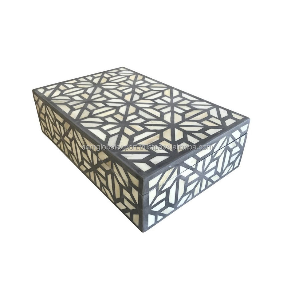Customize Indian Bone & MDF Wood Jewelry Box for Crafts Wooden Stash Box Wooden Keepsake Box for Gift Decorative inlay Work