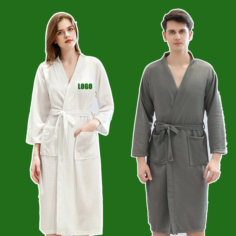 Custom Logo Quick-Dry Compressed Knitted Lightweight Waffle Beauty Salon Robe White Custom Hotel Bathrobe