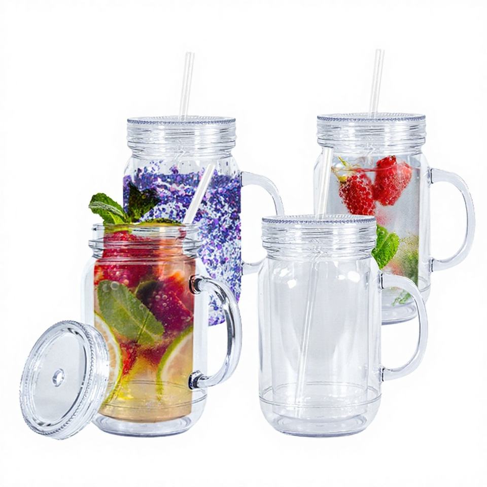 Customize Logo 16oz Double Wall High Quality Reusable Snow Globe Cute Style Mason Jar Lid Straw for Eco-Friendly Unisex Plastic