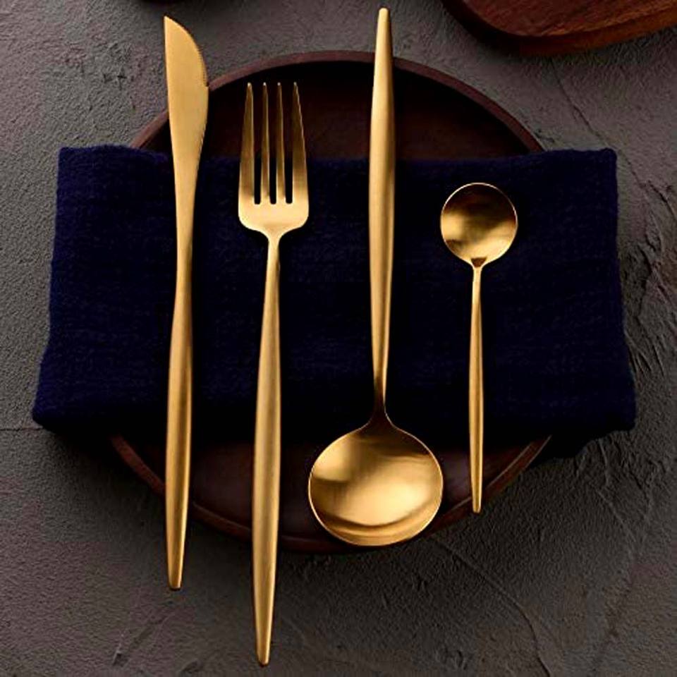 Customize Logo Outdoor Indoor Traveling Slandered Handle for hotel luxury vintage golden silverware Cutlery Set
