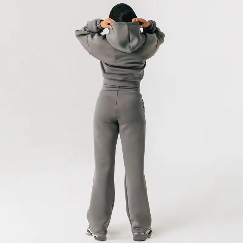 Customize Logo Women Sweatsuit with Crop Hoodie Pullover Sweatshirt & Straight Leg Pant Jogger Tracksuits Set in Fleece Fabrics