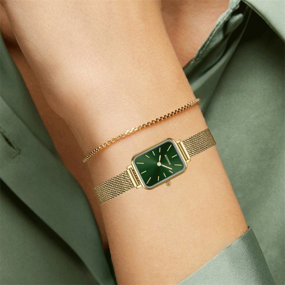 Customize Logo Women Watch Bracelet Japan Movement Simple Fashion Ladies Watch Rose Gold Steel Square Quartz Watch Set Reloj