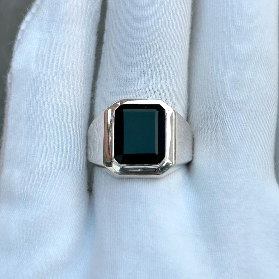 Customize Manufacturer Natural Black Onyx Ring 925 Sterling Silver Rectangle Statement Jewelry Men Signet Ring Factory Wholesale