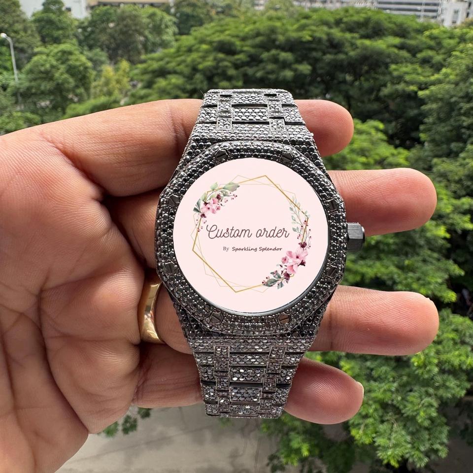 Customize Moissanite Black Diamond Hip Hop Watch for Men Luxury Stainless Steel 41mm Dial Diameter Unique Collection wristwatch