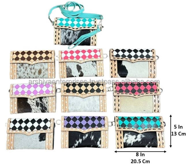 Customize Multi-functional Hand Tooled Checkered Crossbody Mini Bag High Quality Cowhide Sling Bag Women's Wristlet Clutch Purse