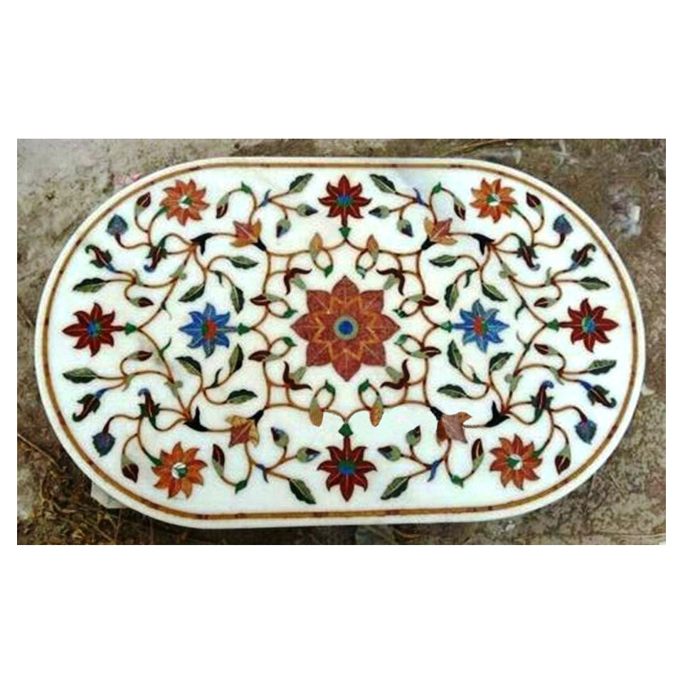 Customize New Arrive 2022 Best Quality Pure White Marble Oval Shape Natural Semi Precious Stones Inlaid Work Dining Table Top