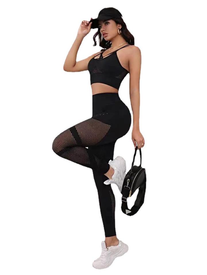 Customize New fashion bra Mesh Fitness 2 Pieces Yoga Suit Sets Sports Sexy Bra Hollow Out Leggings Set Ladies Gym Activewear