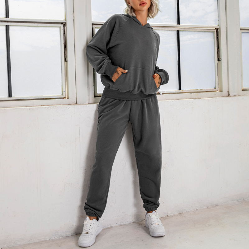 Customize OEM Gym Brand Winter Tracksuit Brown Solid Long Sleeve Sweatshirts Casual Tops Joggers Oversized Pullover Hoodies 100%