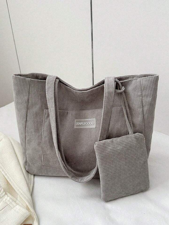 Customize Pink Corduroy Tote Bag Small Square Ribbed Cotton Fabric For Women Shopping School Office Crossbody Shoulder Handbag