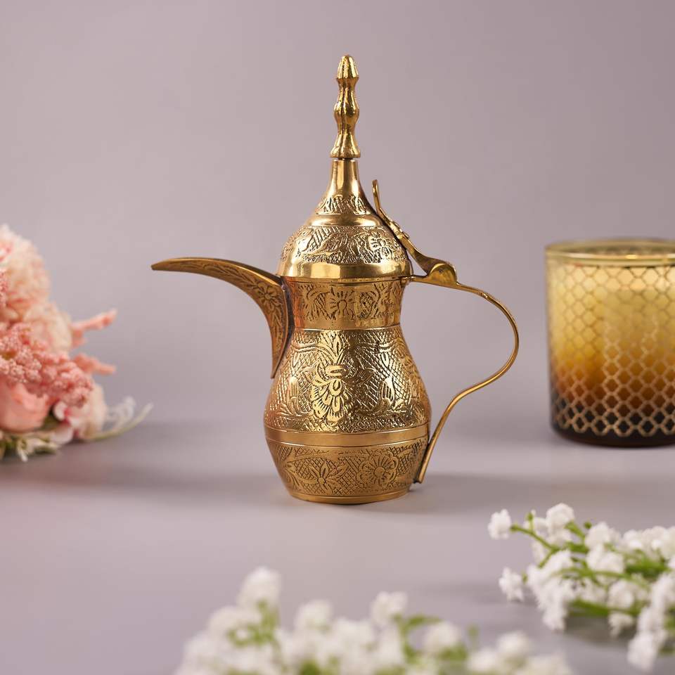 Customize Premium Texture on Arabic Coffee Dallah Hot Selling Coffee Pot Gold Finish Insulated Flask for Tea & Coffee Serving