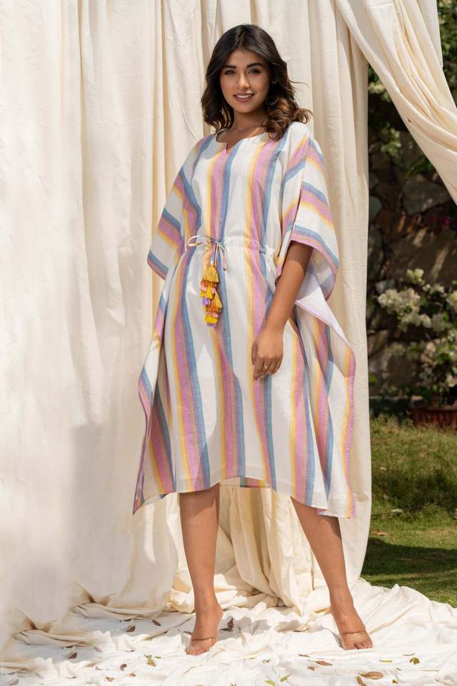 Customize Print V-Neck Three Quarter Cotton Designer Summer Casual Wear Dress Women's Wear Handmade Kaftan Short Cotton Kaftan