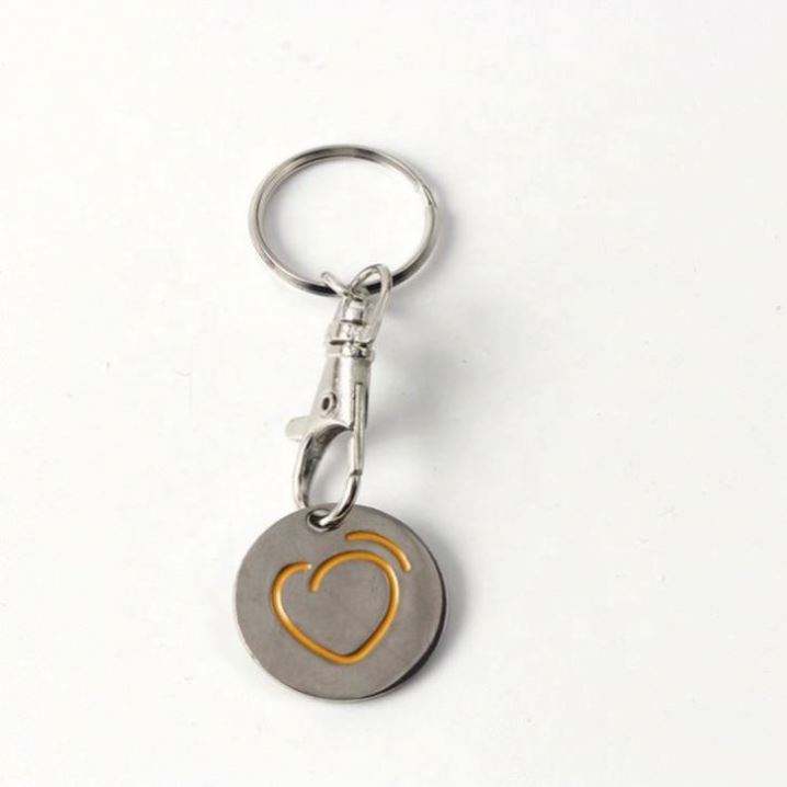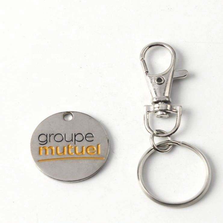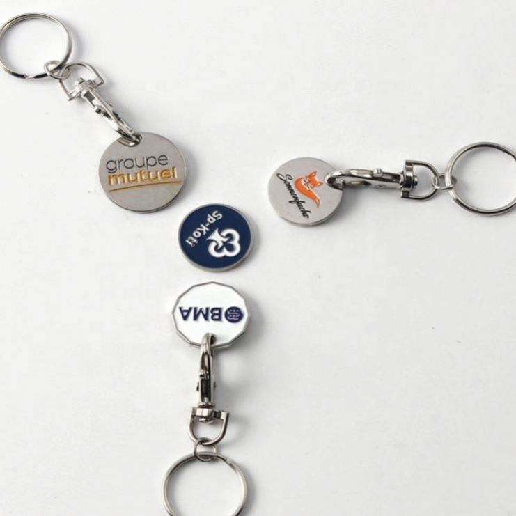 Customize Retail Fashion Logos Keychain Multi Euro Trolley Coin Stainless Steel Trolly Key Rings Crystal With Chain