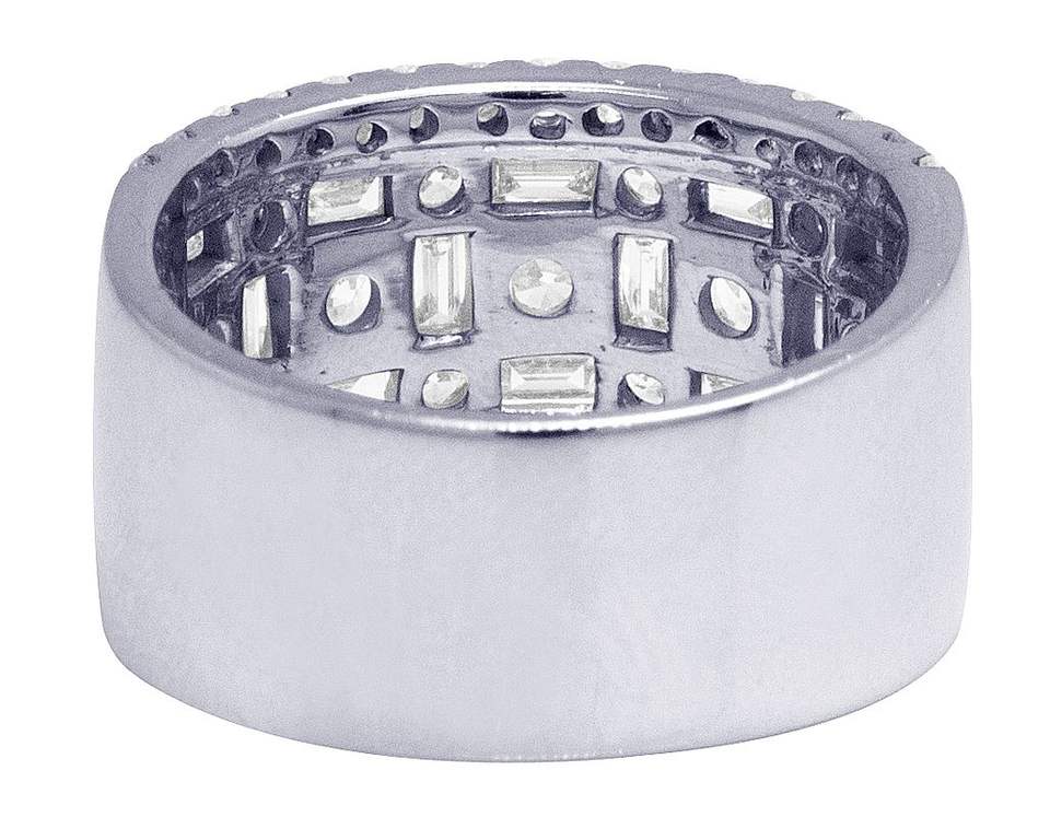 Customize S925 Sterling Silver Hip Hop Fully Iced Out Moissanite Round & Baguette Diamond Eternity Band Ring For Men