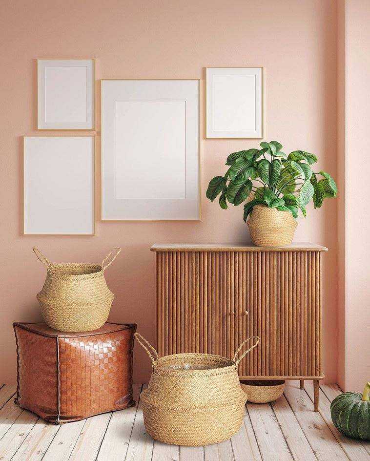 Customize Seagrass Plant Basket Multipurpose Natural Hand Woven Belly Basket with Handle for Storage and Decoration