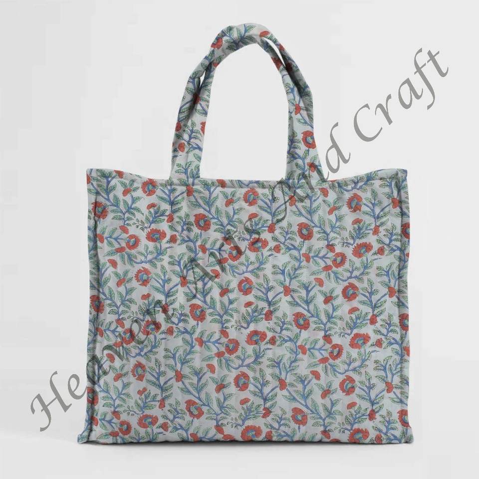 Customize Shoulder Quilted Tote Bag Eco Friendly Floral Cotton Quilted Square Lightweight Beach Quilted Bag Handmade Block Print