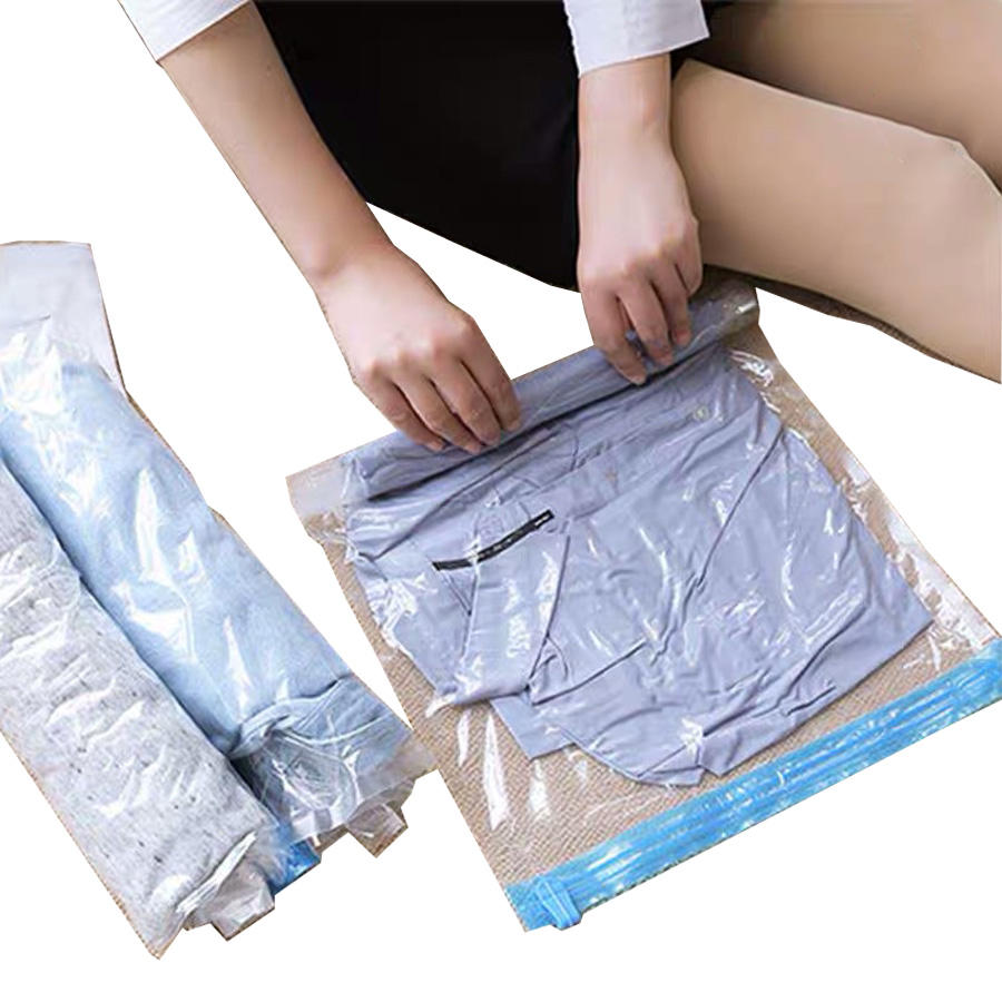 Customize Transparent Plastic Garment Packaging Hand Rolled Compressible Travel Clothes Zipper Pouch Vacuum Storage Bags