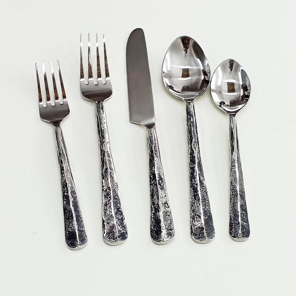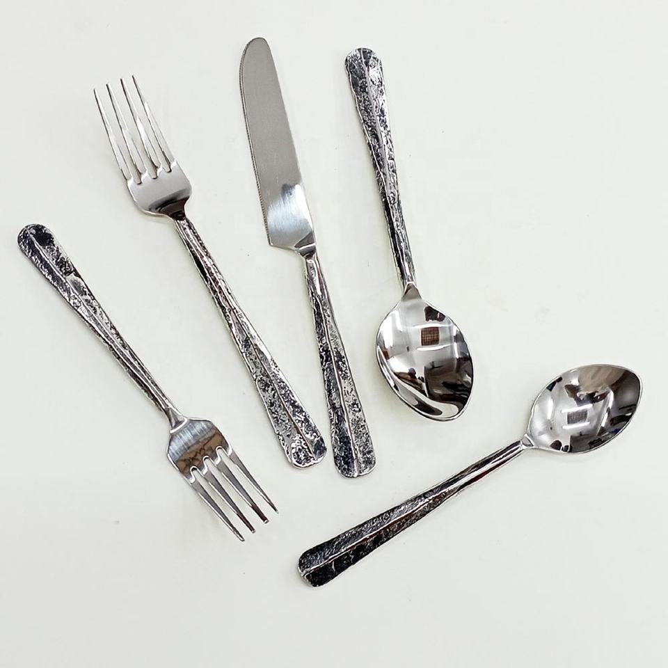 Customize logo with rough design Black shade handle Handmade Top Selling Stainless Steel Silver Plated Spoon Set