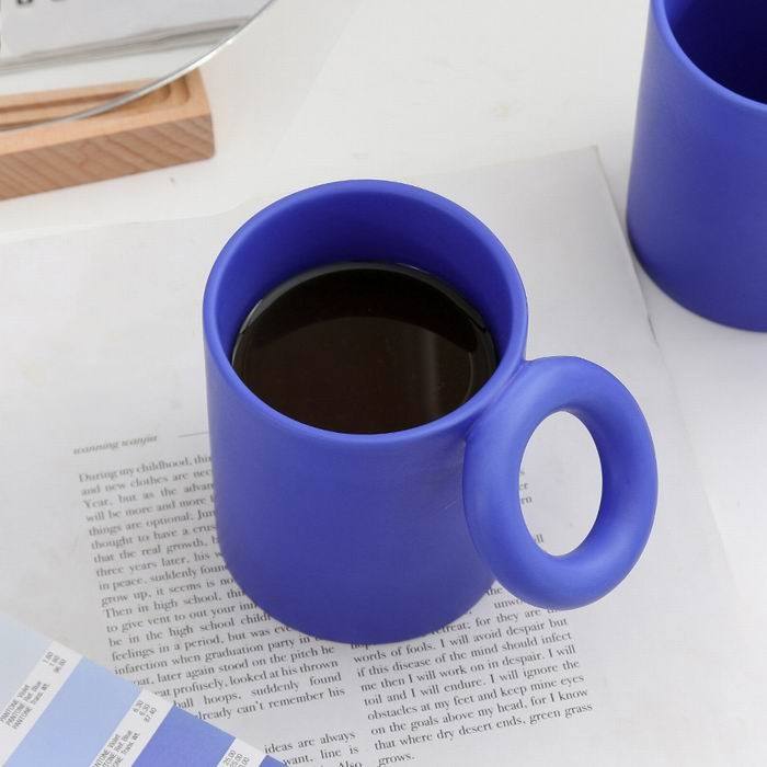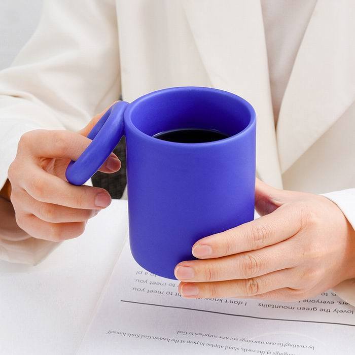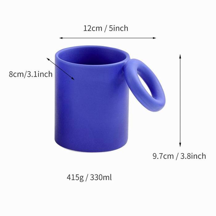 Customized 11oz/330ml Blue Ceramic Travel Mug Unique Inverted Coffee Mug Shape Newest Design for Business Gifts Milk Mug Type