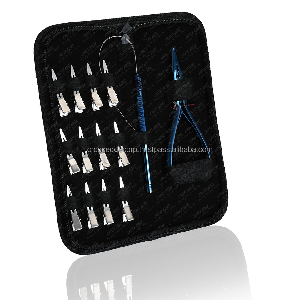 Customized 12-Piece Hair Extension Tools Kit Micro Beads Removal Pliers Stainless Steel Sectioning Clips Loop Tool Wire Case