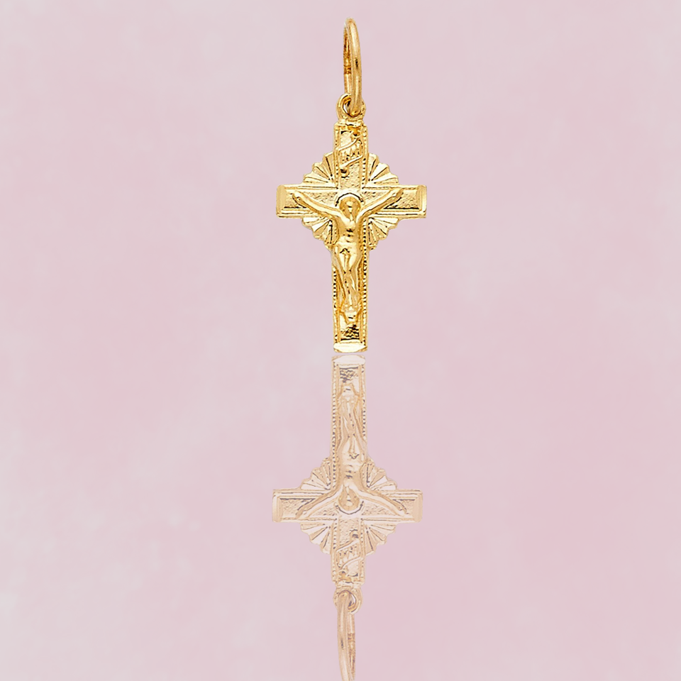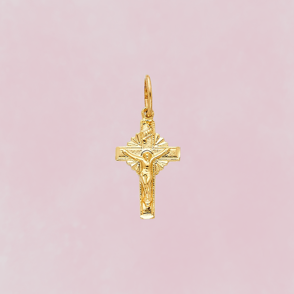Customized 14K Yellow Gold Plated Christian Crucifix Cross Pendant New Design Children's Jewelry Zircon Stone Made Metal Alloy