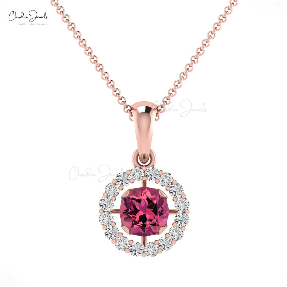 Customized 14k Solid Gold Wedding Pendant with Pink Tourmaline Halo Design October Birthstone Fine Pendants & Charms Wholesale