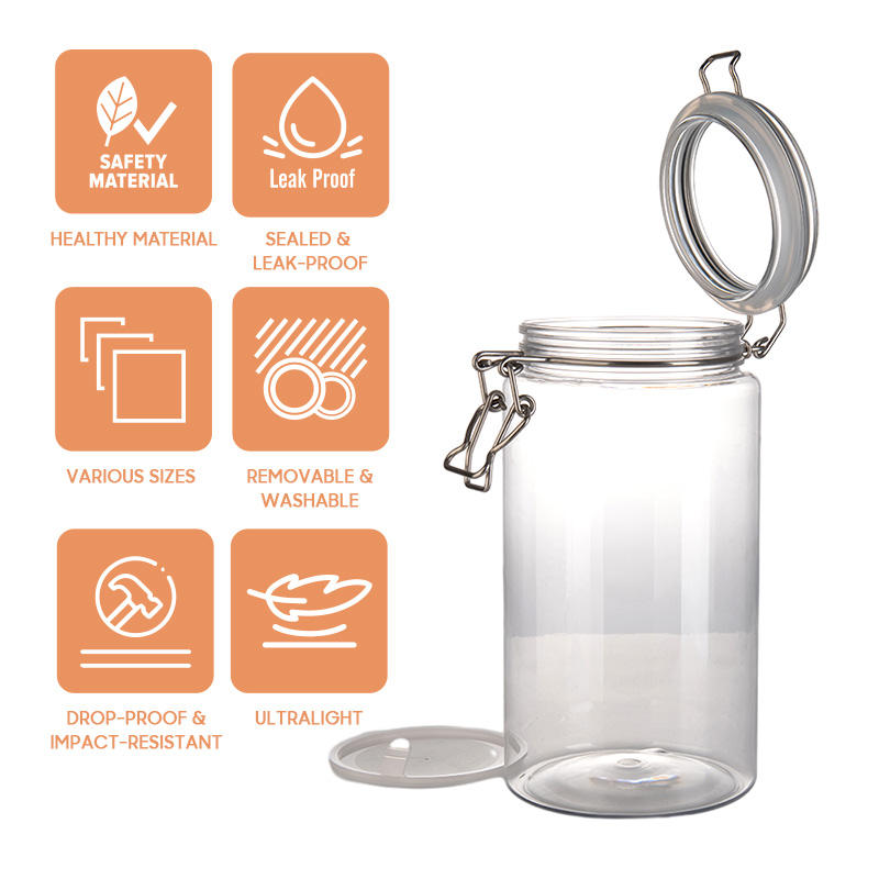 Name:PET Kitchen Storage Bottles Jars with Airless Metal Clip Lid