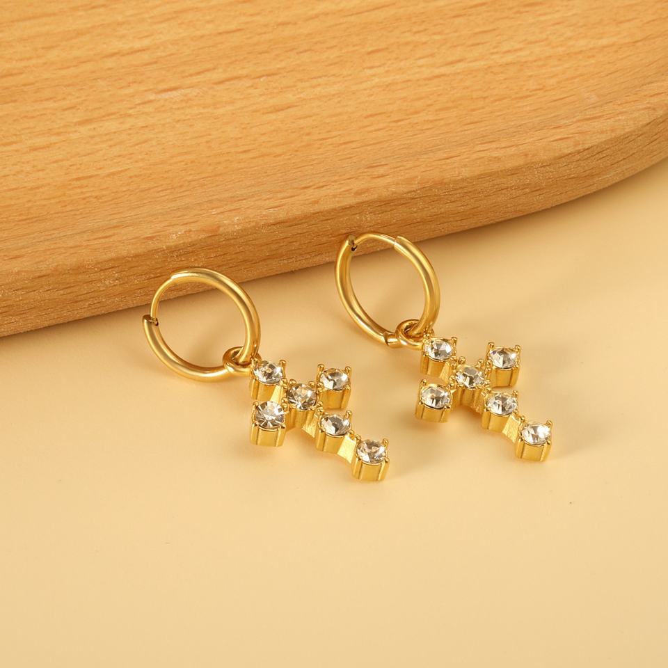Customized 18K Gold Stainless Steel Gold Plated Anti-Tarnish Gold Fashion Jewelry Cross Earring for Women