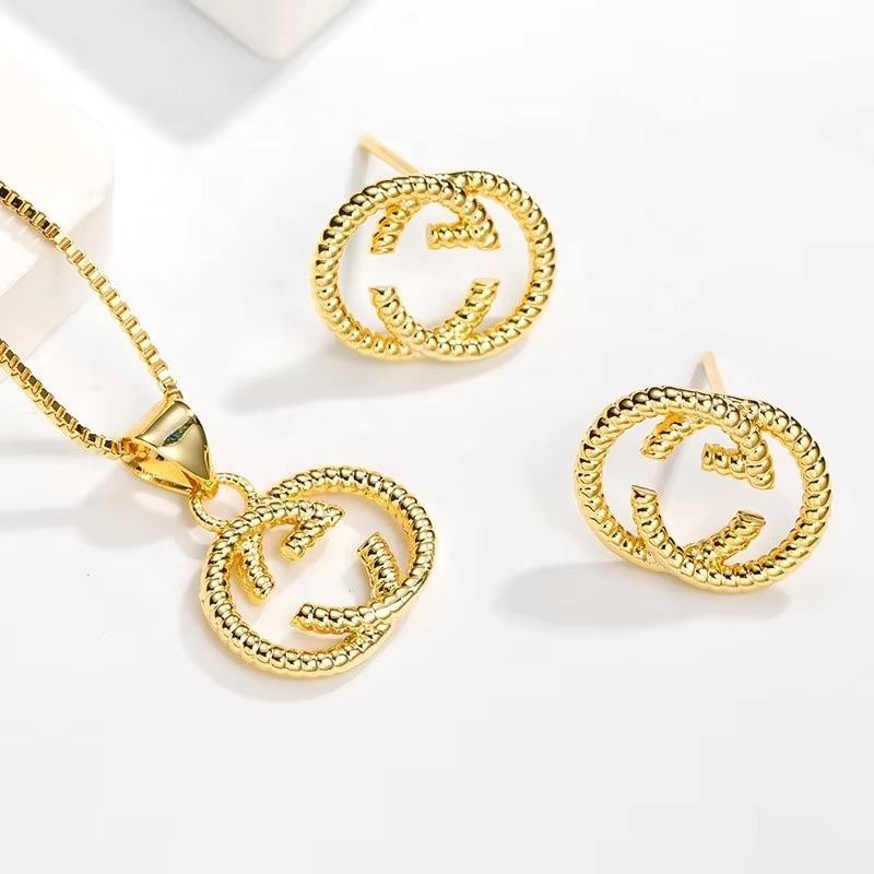 Customized 18k Gold-plated Charm Necklace Earrings, Women's Jewelry Necklace Set