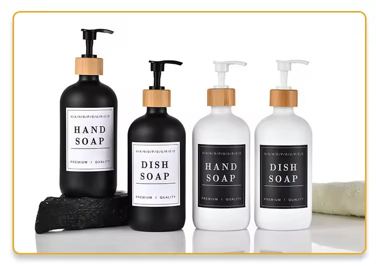 Customized 2 Glass Bottles Pet Glass Liquid Soap Dispenser Bottle With Bamboo Base