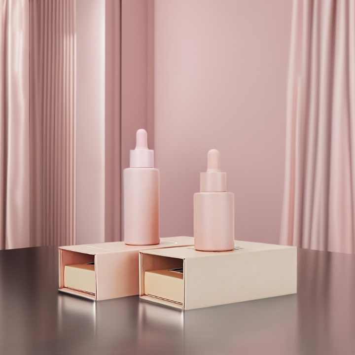 Customized 30ml Matte Beige Glass Dropper Bottle with Flat Shoulder Sealed for Essential Oils Includes Gift Box