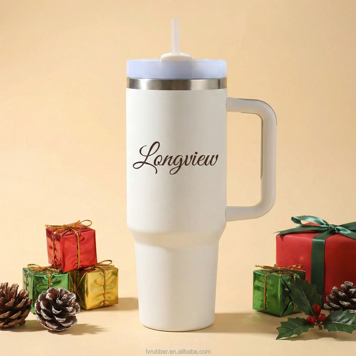 Customized 40oz 304 Stainless Steel Double Wall Tumbler Straw Handle Eco-Friendly Outdoor Travel Mug Lid Coffee Thermal