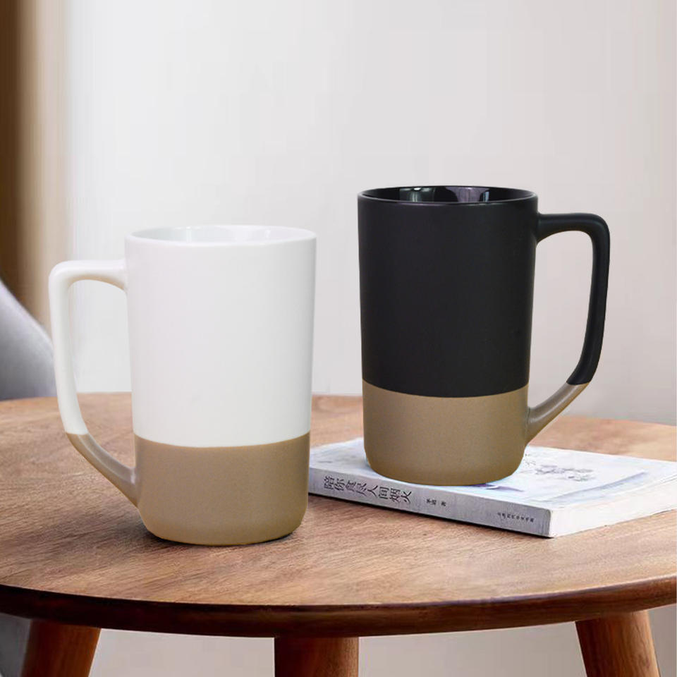 Customized 515ML Modern Simple Two-color Spliced Coffee Cup Classic Black and White Water Cup Home and Office Ceramic Cup