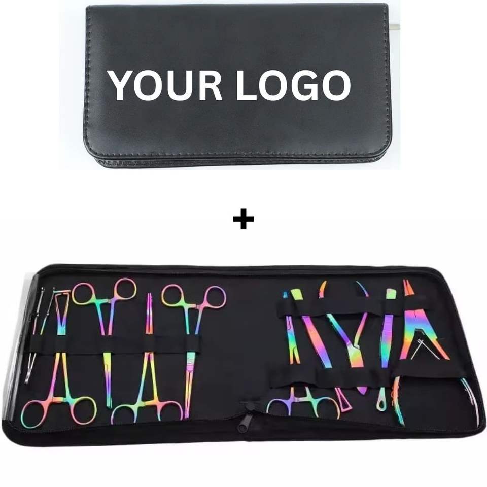 Customized 8-Piece Stainless Steel Body Piercing Tool Kit with Case Professional Ear Nose Nipple Piercing Clamps Forceps Set