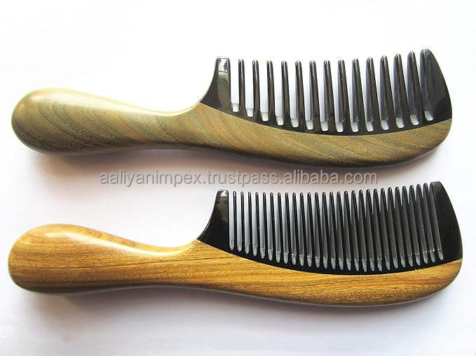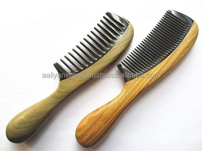 Customized Aaliyan Impex Direct Salon Massage Hair Comb Best Home Decor Buffalo Horn Wood Handle Women Men Laser Common Combs