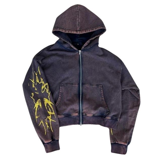 Style:Vintage, Oversized, STREETWEAR, HIGH STREET, Pullover, zipper-up, Sweatshirt