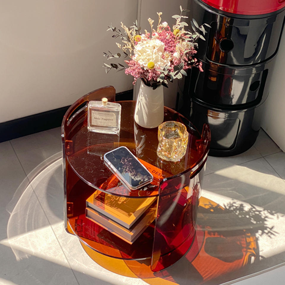 Customized Acrylic Brown Double-layer Circular Tea Table with Creative Simplicity and Transparent Splicing Table Storage Rack