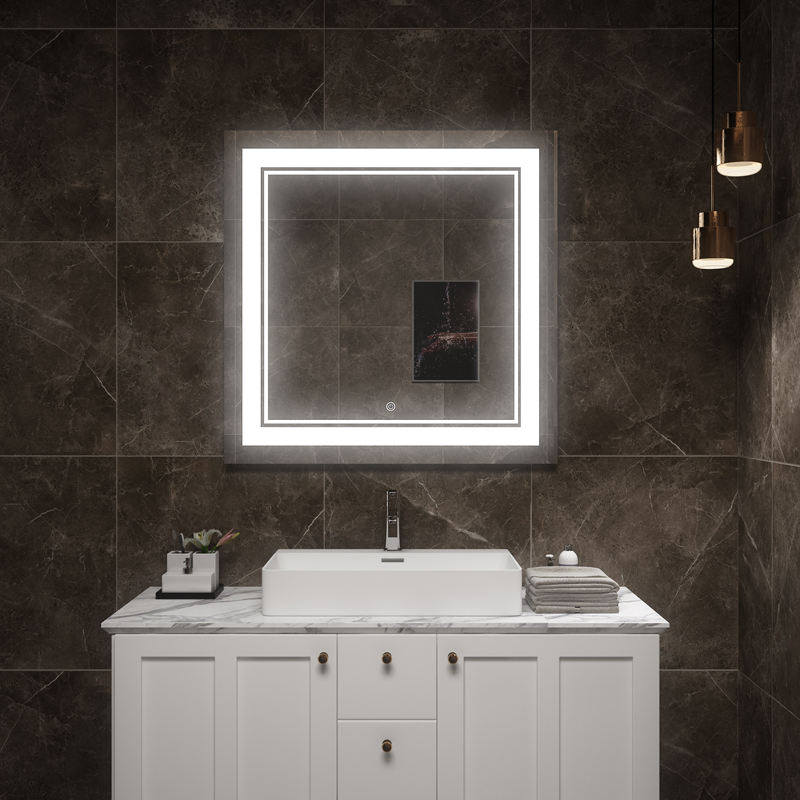 Customized Modern Anti-fog Wall Mounted Magnifying Makeup Mirror with LED Light Smart Mirror Speaker for Hotel & Apartment Use